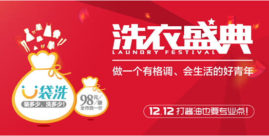 雙12洗衣盛典,U袋洗網上洗衣一袋只要98元,12.12當天下單立減10元,并有體驗券限量送!